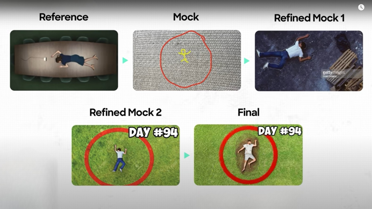 Concepting the Click: MrBeast, arguably the most successful YouTuber in the world, is famous for concepting titles and thumbnails before greenlighting a video idea. His team brainstorms dozens of thumbnail mocks for each video idea, aiming to find the most irresistible combination. Here is an example of a thumbnail that was inspired by a Severance and the corresponding mocks to deliver a final idea thumbnail from MrBeast’s conversation with Jon Youshaei.